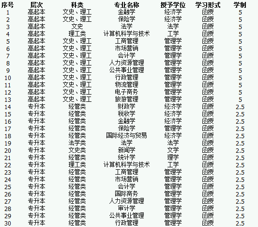 招生專業一覽表